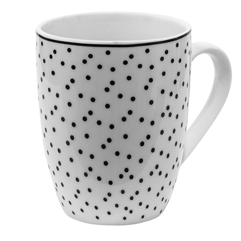 Clayre & Eef Mok set van 6 stuks 350 ml Wit Zwart Porselein Theemok