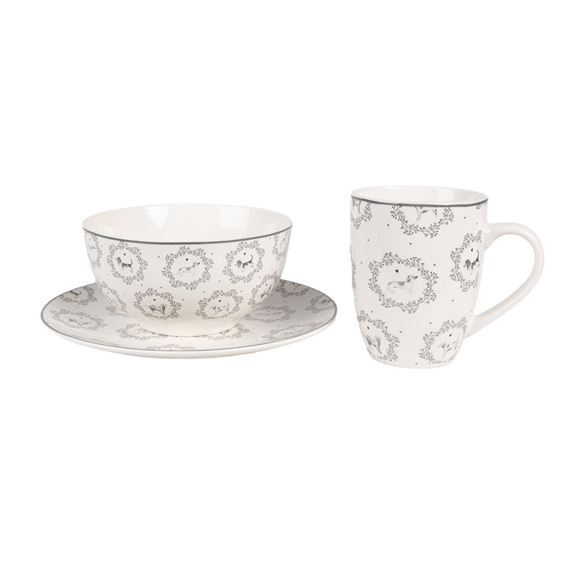 Clayre & Eef Mok 325 ml Wit Grijs Porselein Honden