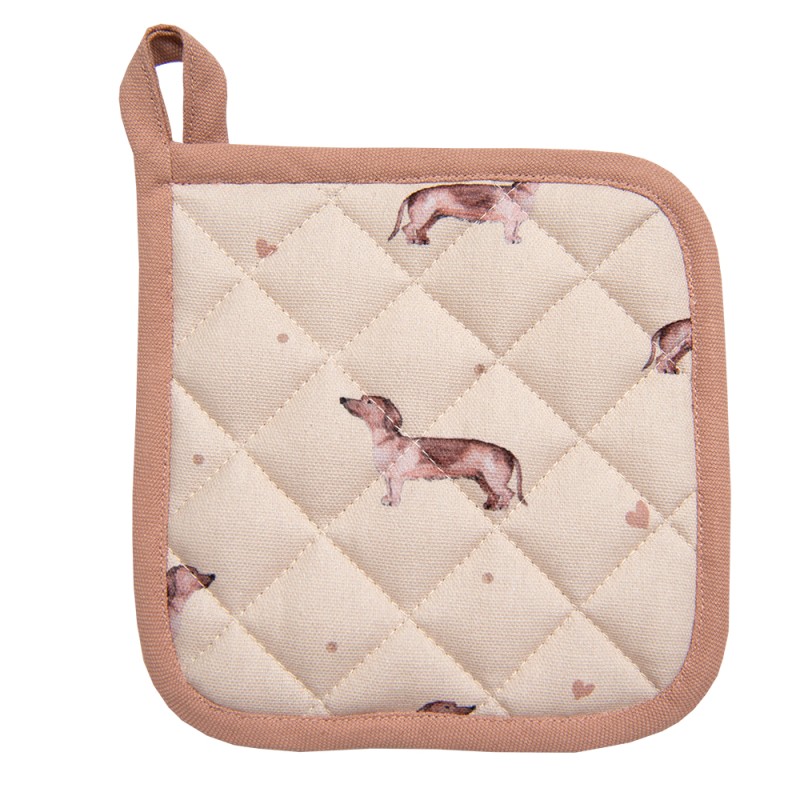 Katoenen pannenlap Beige kleurig met bruin met een print van een teckel van het merk Clayre & Eef.