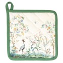 Deze stijlvolle pannenlap van het merk Clayre & Eef met tropische planten en dieren motief op een beige achtergrond met een groen randje is mooi en praktisch tegelijk. De print in botanische stijl met een exotische uitstraling geeft een gezellige en warme sfeer aan je keuken. De pannenlap is gemaakt van 100% katoen met een polyester vulling voor isolatie en is voorzien van een handig lusje om de pannenlap op te hangen. De afmeting van de pannenlap is 20x20 cm, en heeft een goede grip als afgiethulp. Staat mooi in jouw keuken, past binnen elk interieur en helpt jou veilig en makkelijk warme gerechten uit oven of magnetron te halen. Onze pannenlappen kunnen gewassen worden in de wasmachine. Deze pannenlappen komen uit de keukentextielserie Birds in Paradise . In deze prachtige serie vind je ook bijpassende artikelen zoals tafelkleden, tafellakens, tafellopers, kussens, placemats, servetten, schorten, maar ook thee-en keukendoeken, pannenlappen en broodmanden. Met keukentextiel van Clayre & Eef wordt jouw keuken nog gezelliger!