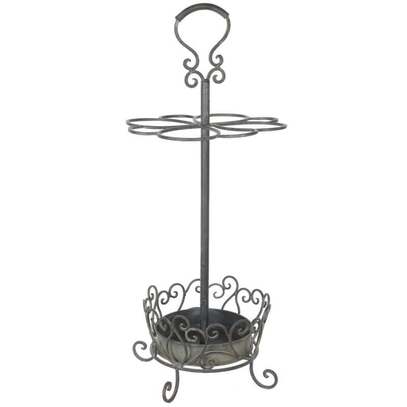 Grijs metalen vintage paraplubak versierd met krullen van het merk Clayre & Eef