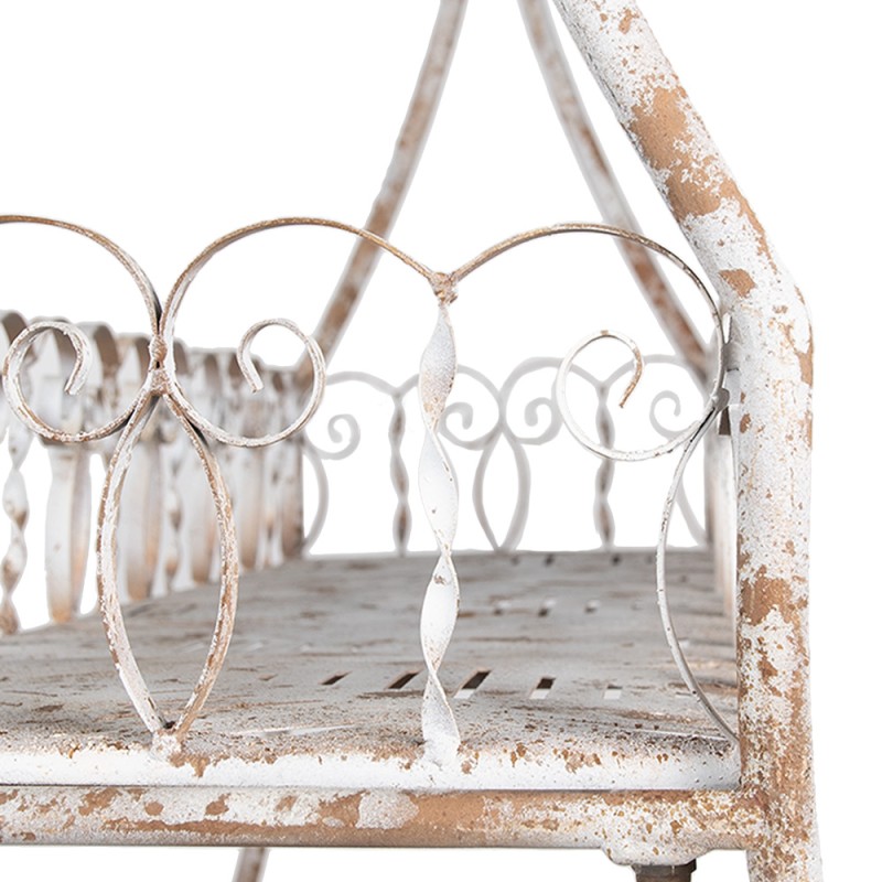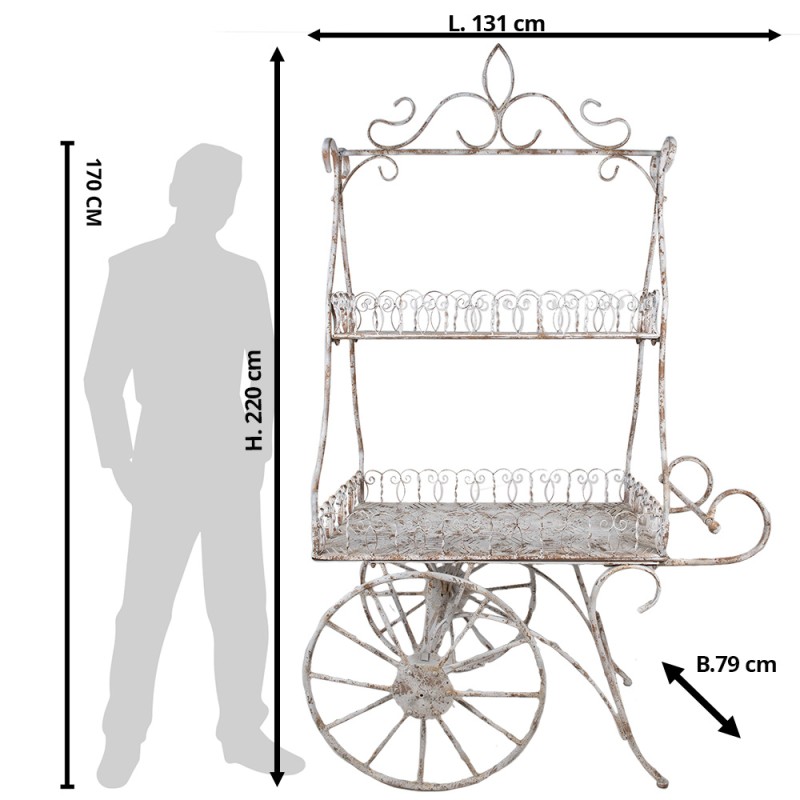 Decoratieve wit-bruine metalen plantenkar met een elegant ontwerp en gedetailleerde afwerking. Een blikvanger in uw tuin. Het is een prachtige tuindecoratie die uw tuin naar een hoger niveau tilt.