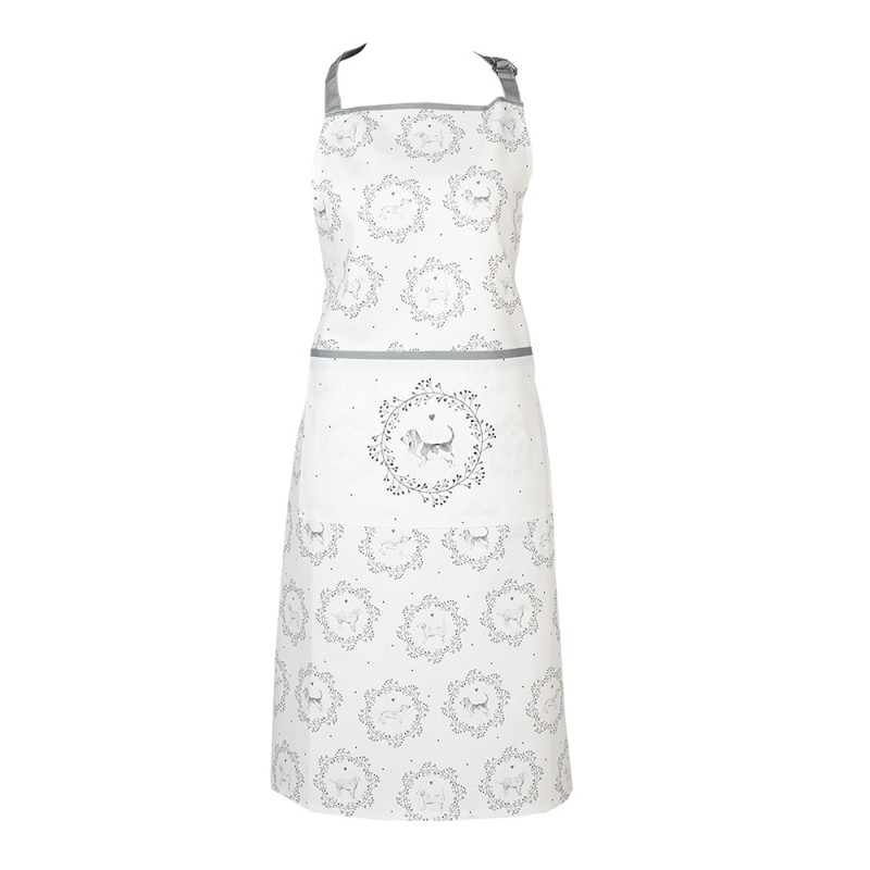 Clayre & Eef Keukenschort 70x85 cm Wit Grijs Katoen Hond