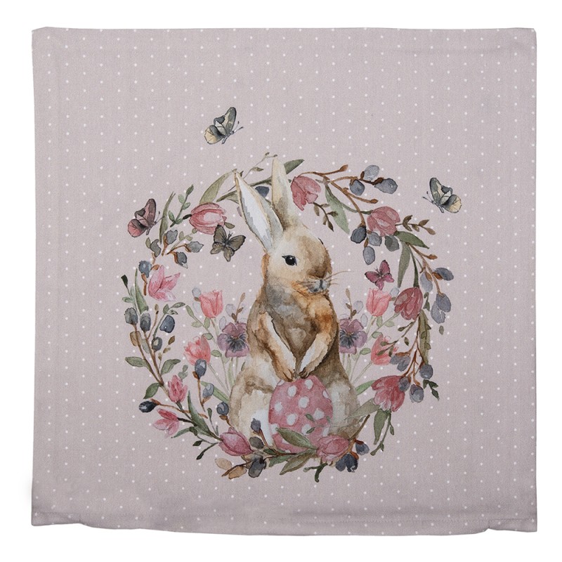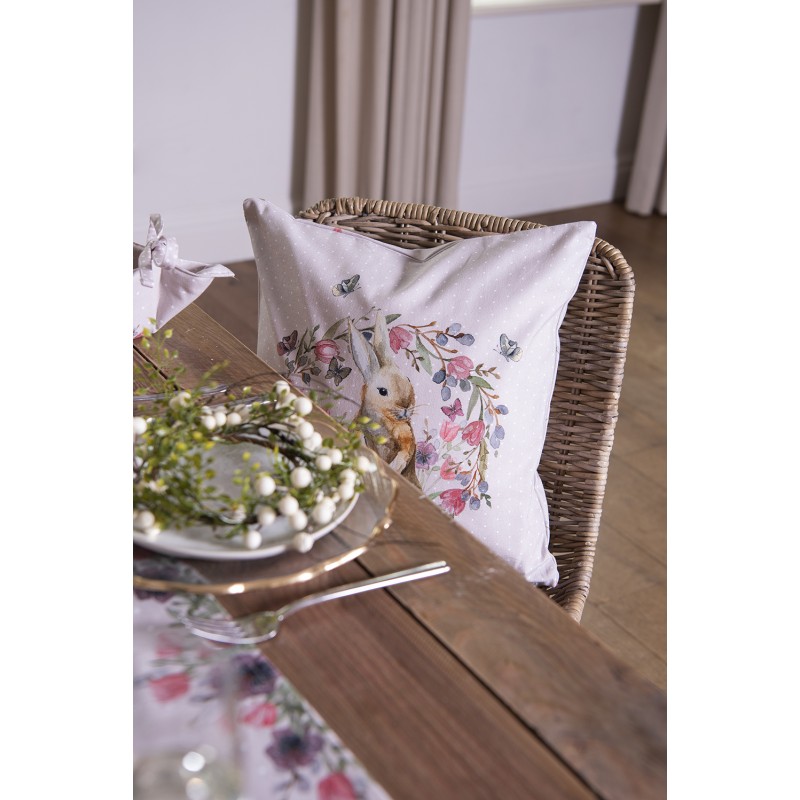 Clayre & Eef Kussenhoes 40x40 cm Beige Roze Katoen Konijn Bloemen