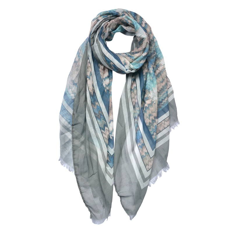 Juleeze Sjaal Dames Print 70x180 cm Grijs Blauw Synthetisch