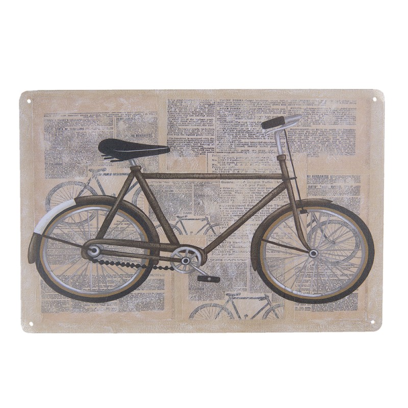 Clayre & Eef Tekstbord 30x20 cm Beige Grijs IJzer Fiets