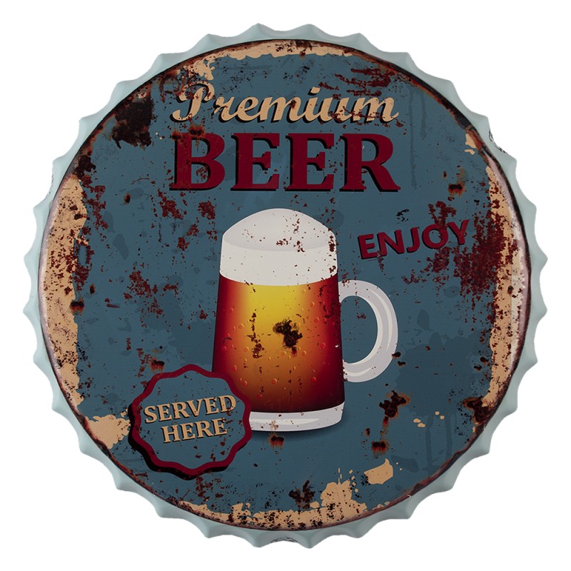 Clayre & Eef Tekstbord Ø 50 cm Blauw IJzer