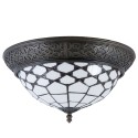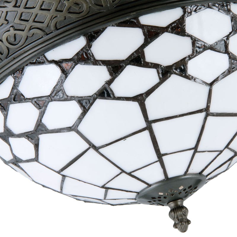 Plafonniere met bruin witte Tiffany stijl glaskap met een klassiek Art Deco motief