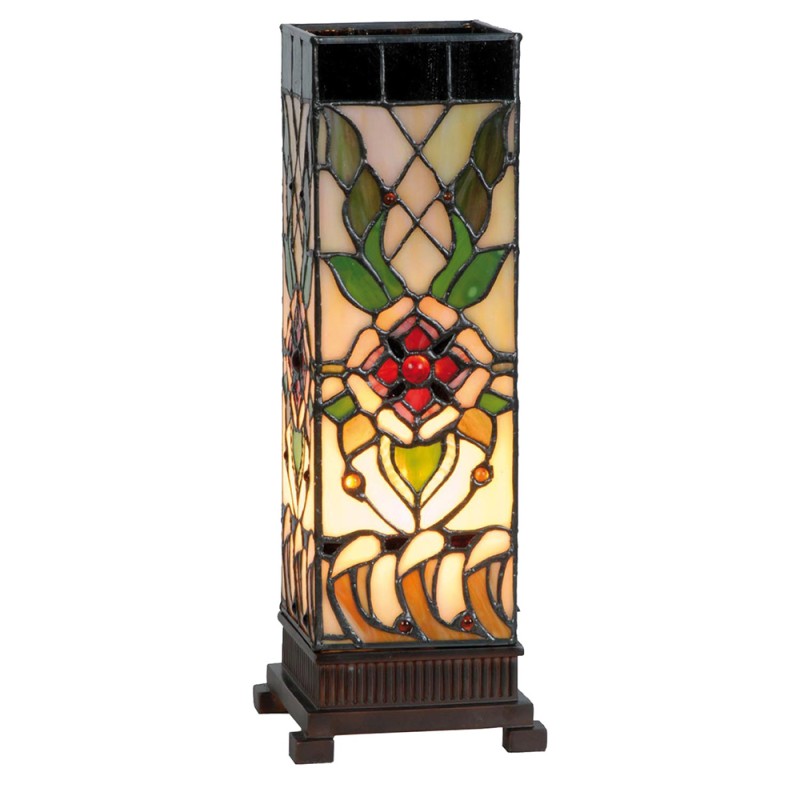 Lumilamp Tiffany Tafellamp 12x12x35 cm Beige Groen Glas Roos