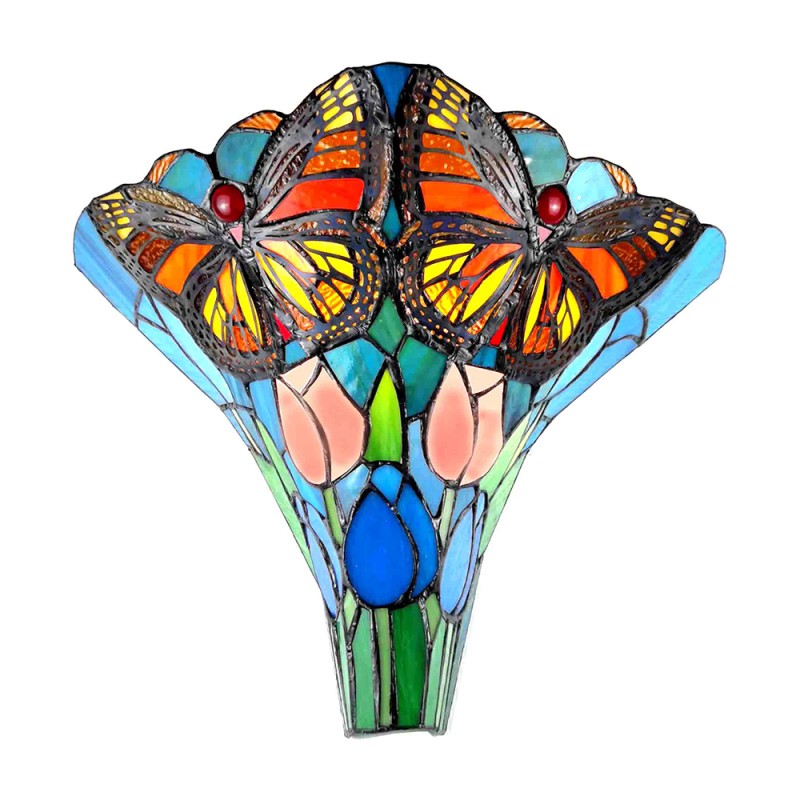 Tiffany stijl glas in lood groenblauwe, rode wandlamp