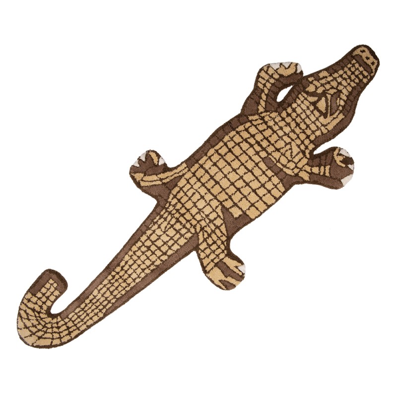 Mooi geweven bruin vloerkleed van wol in de vorm van een krokodil van het merk Clayre & Eef. Maak je woonruimte af met dit vloerkleed. De afmeting is 152x54x2 cm.