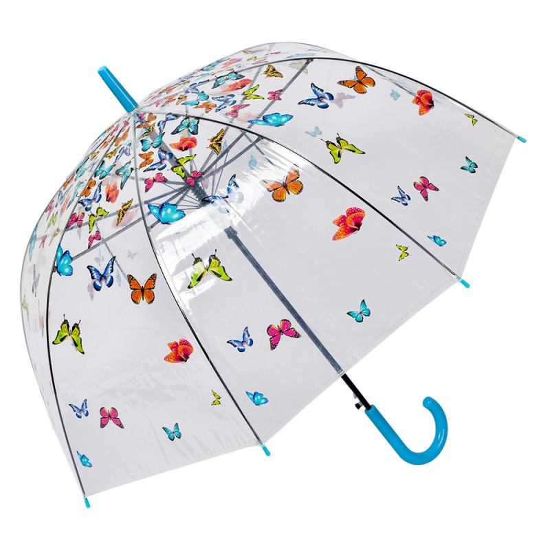 Clayre & Eef Paraplu Volwassenen Ø 90 cm Transparant Kunststof Vlinders