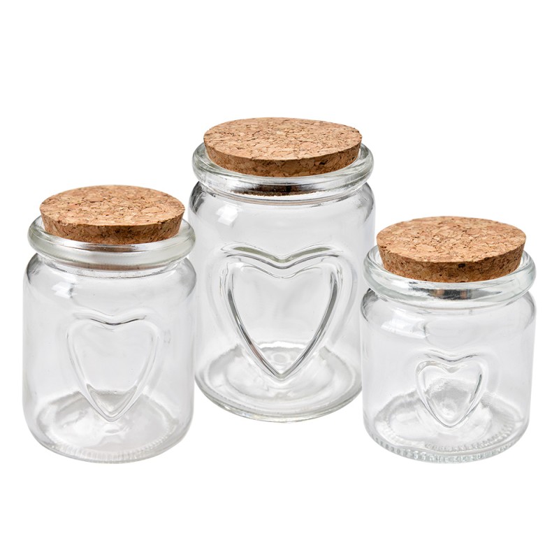 Clayre & Eef Voorraadpot Ø 6x8 cm Transparant Glas Hartjes