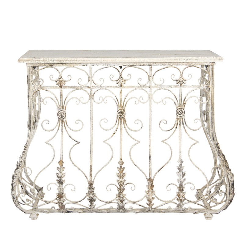 Klassieke rechthoekige witte wandtafel van hout en ijzer van het merk Clayre & Eef.