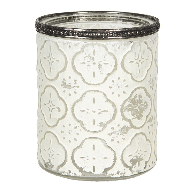Clayre & Eef Theelichthouder Ø 9x11 cm Wit Glas