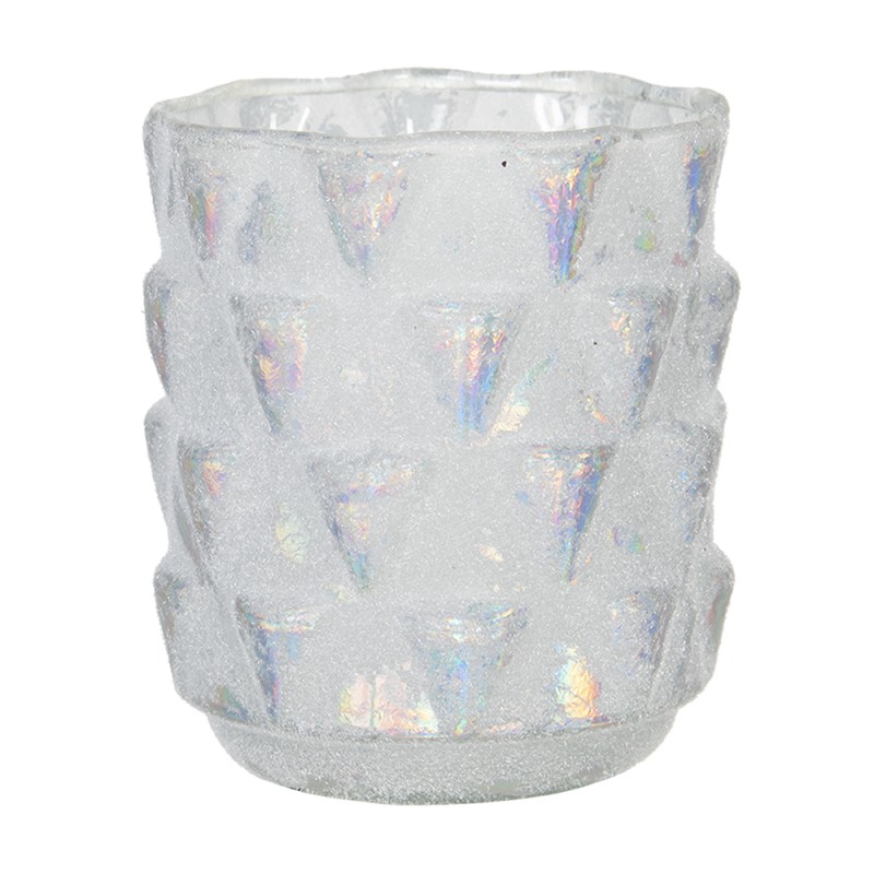 Clayre & Eef Theelichthouder Ø 9x10 cm Wit Glas