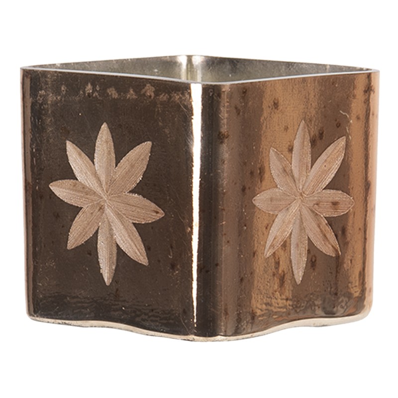 Clayre & Eef Theelichthouder 7x7x9 cm Goudkleurig Glas Ster