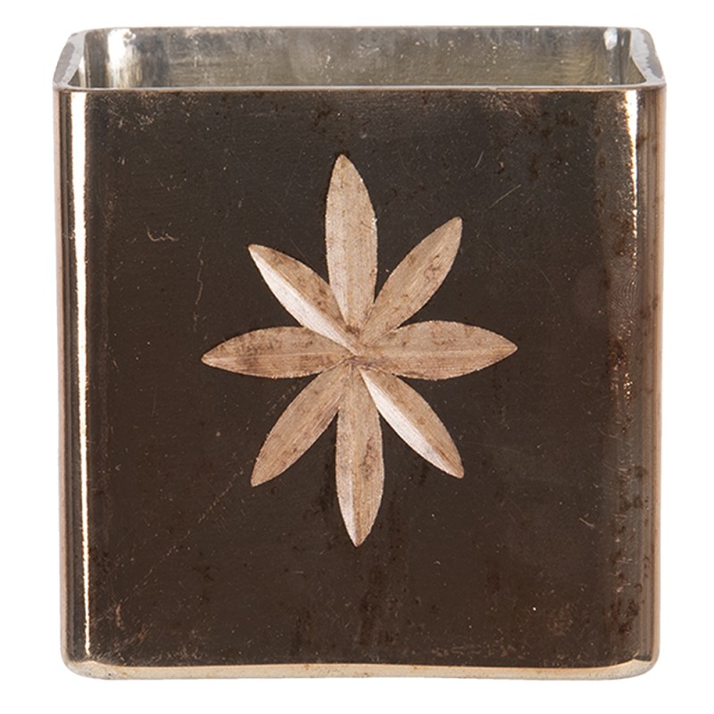 Clayre & Eef Theelichthouder 10x10x10 cm Goudkleurig Glas Ster