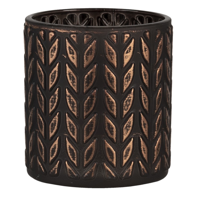 Clayre & Eef Theelichthouder Ø 7x8 cm Koperkleurig Zwart Glas