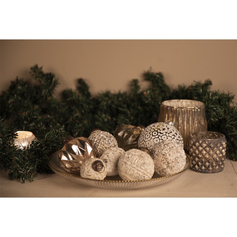 Mooi voor op tafel, decoratieve zwart met beige, glazen theelichthouder, in een landelijke stijl, van het merk Clayre & Eef.