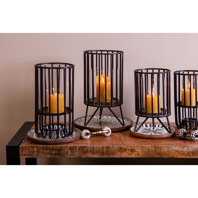 Clayre & Eef Windlicht Ø 14x25 cm Zwart Metaal