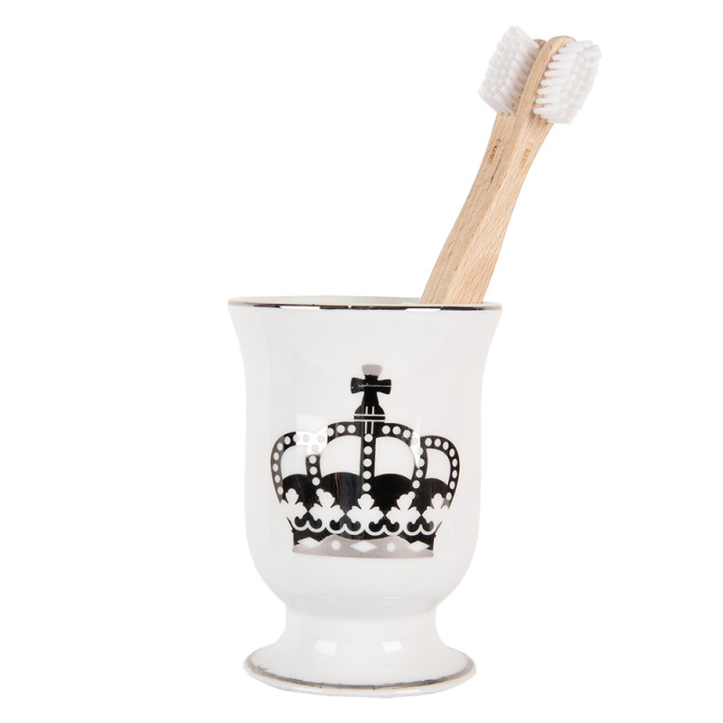 Clayre & Eef Tandenborstelhouder Ø 8x11 cm Wit Keramiek